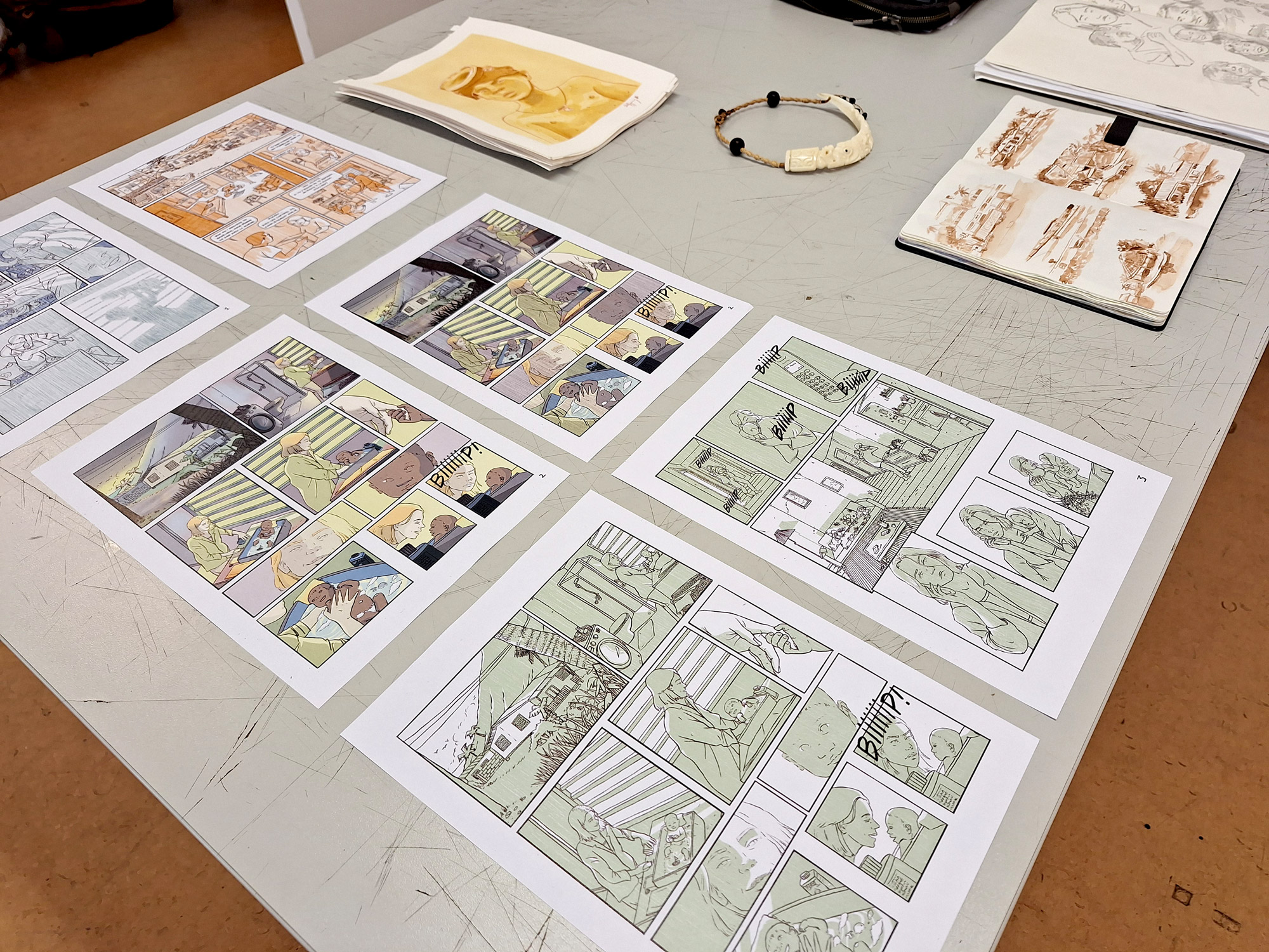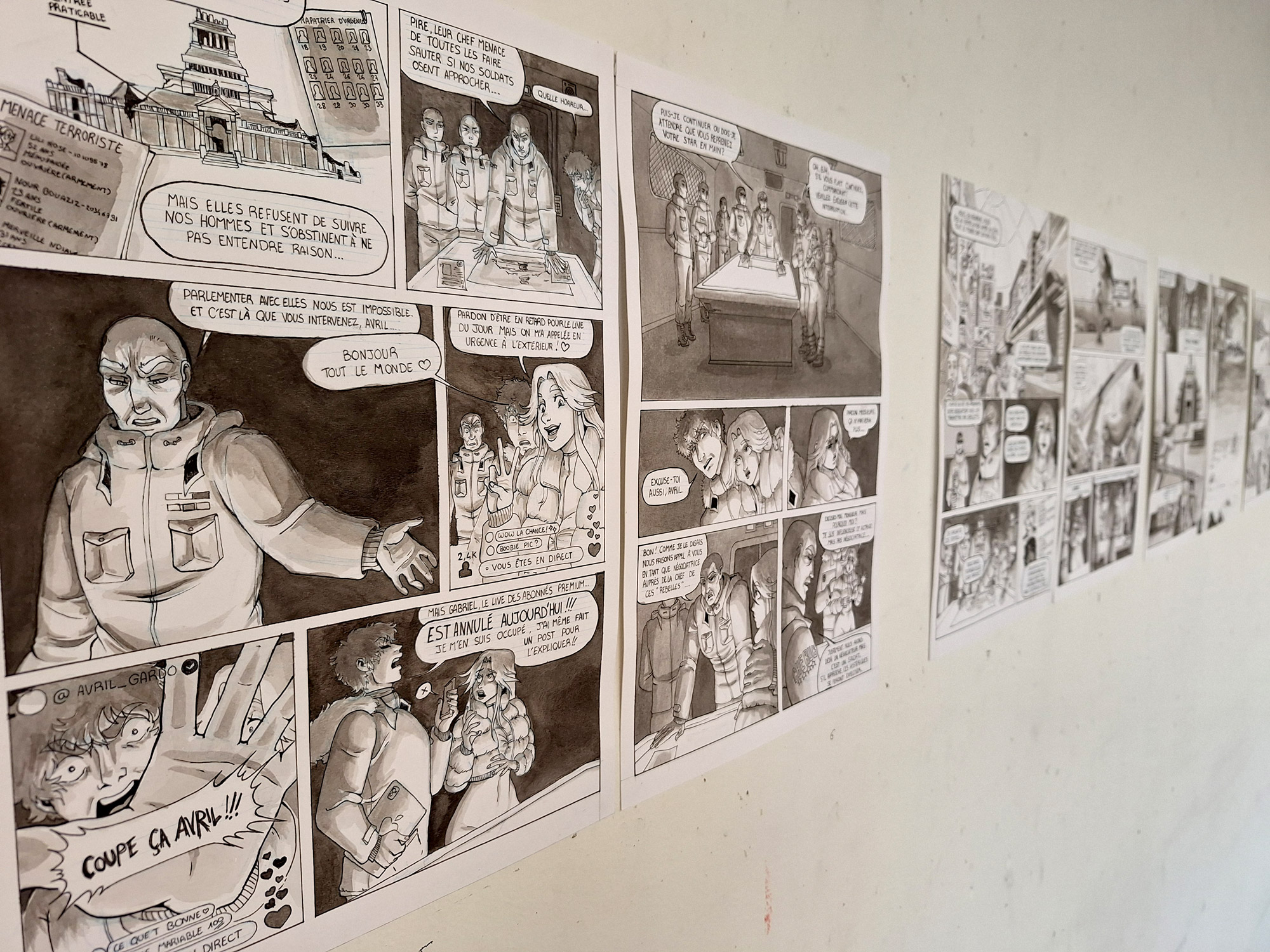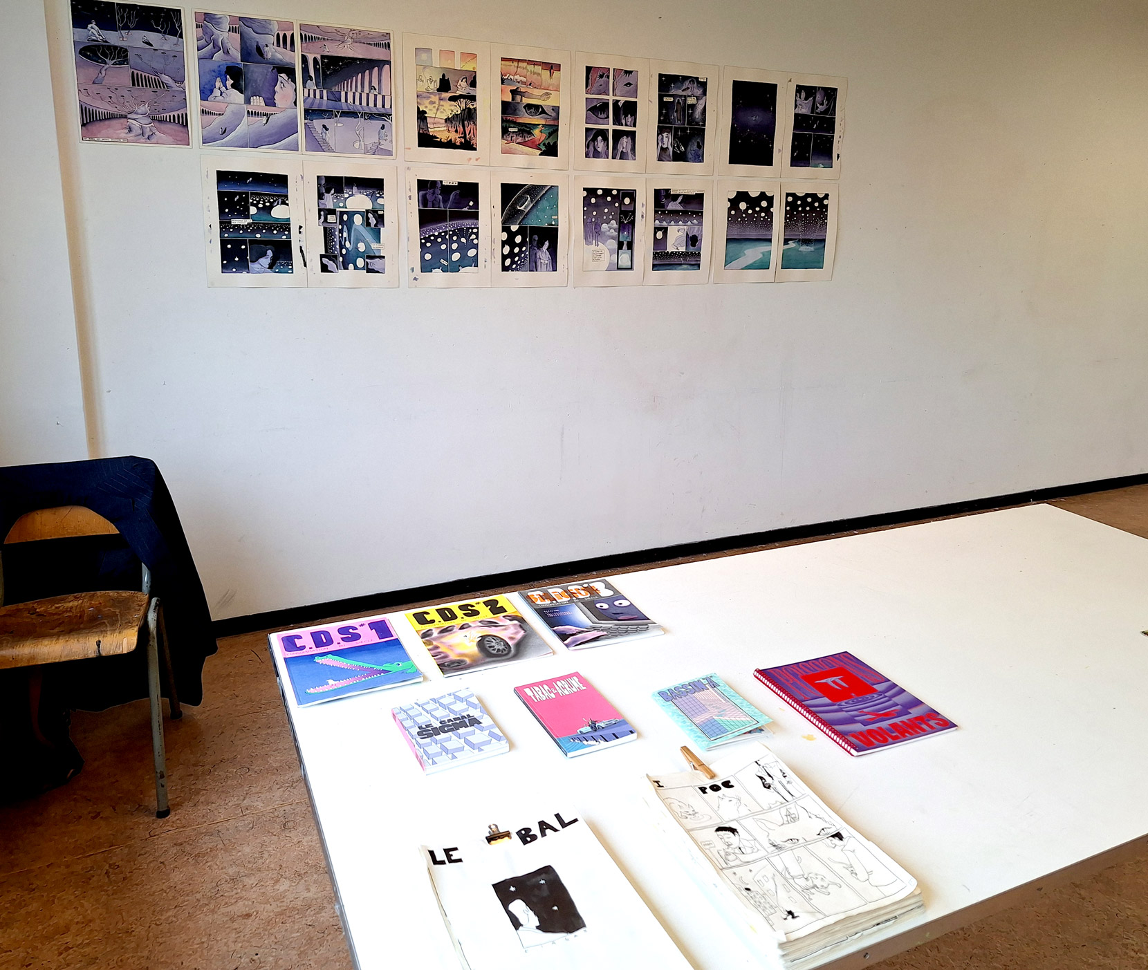 Photos du jury diplômant de master 2 bande dessinée du 21 juin 2024. Les membres du jury étaient : Romane Armand, June Julien Misserey et Marie Spénale.
